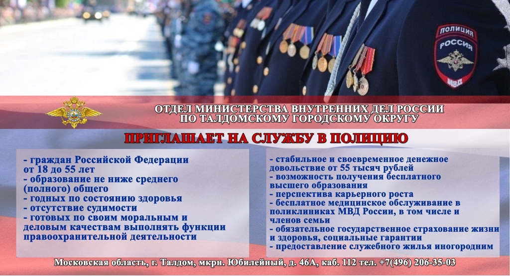 ОМВД России по Талдомскому городскому округу приглашает на службу в полицию