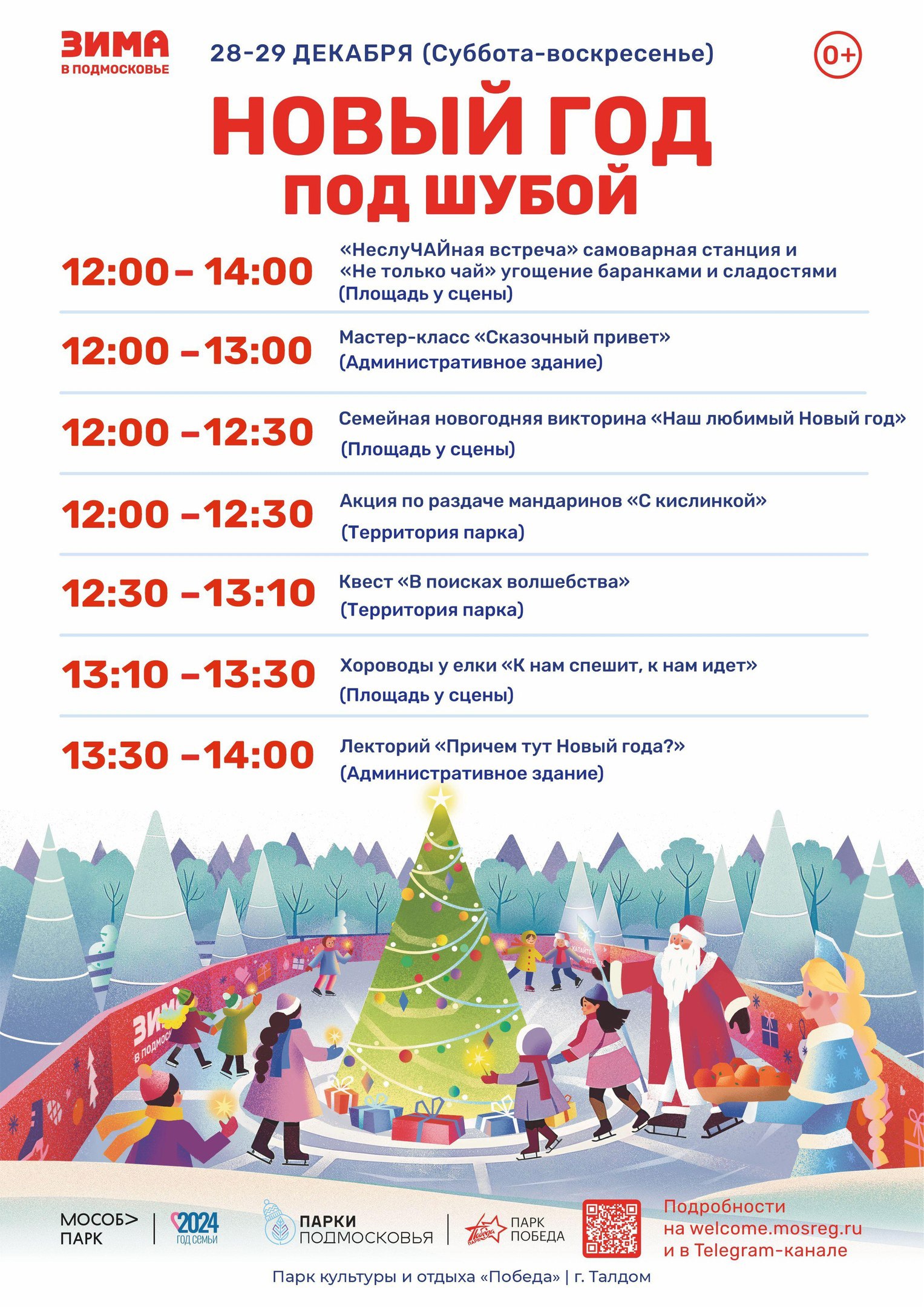 Парк культуры и отдыха «Победа» г.Талдом подготовил разнообразную развлекательно-познавательную программу на любой вкус. Мастер-классы, новогодние викторины, хороводы и флешмобы, концертные программы, а также лекции по истории нового года можно будет посетить 28 и 29 декабря с 12.00 до 14.00 часов.